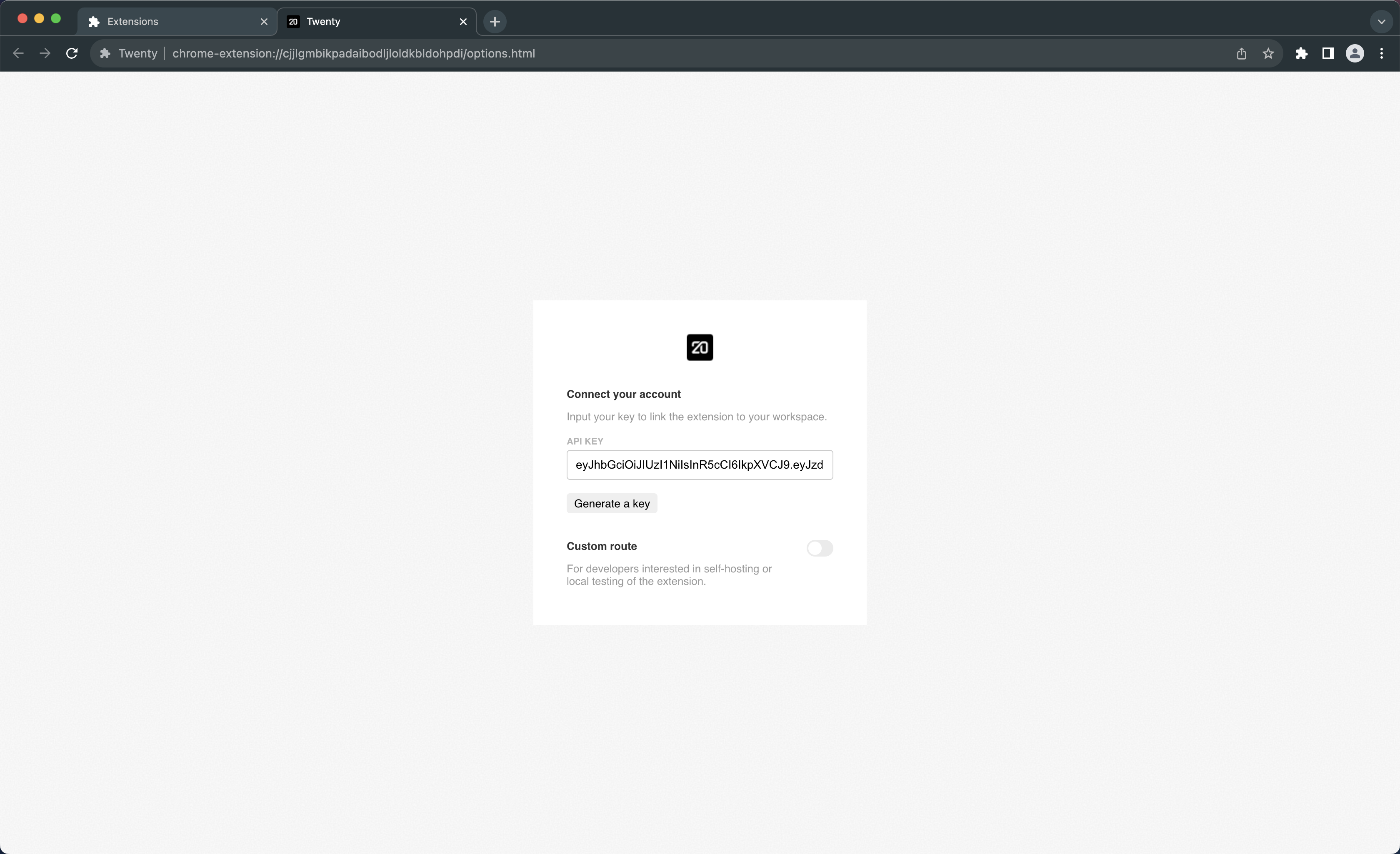 Twenty Chrome Extension.